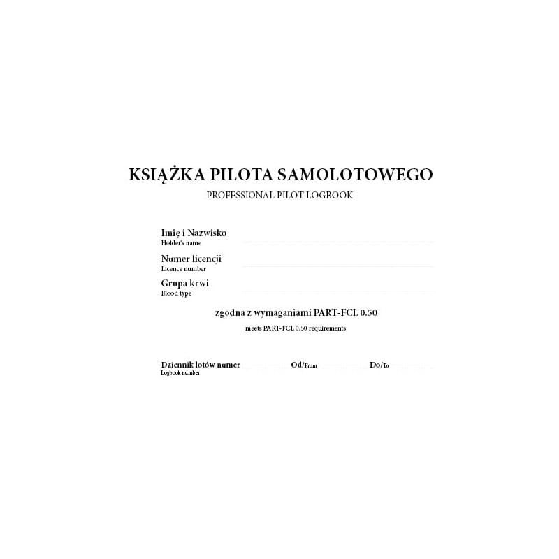 Książka Pilota Samolotowego jest przygotowana w oparciu o przepisy Part - FCL 0.50. Data obowiązywania przepisów Part - FCL w Polsce to 8 kwietnia 2013. Książka posiada dwujęzyczne rubryki (polsko-angielskie). Szyta oprawa wykończona wysokiej jakości okleiną. Rogi okładki wzmocnione metalowymi narożnikami zapewnią trwałość i elegancję.